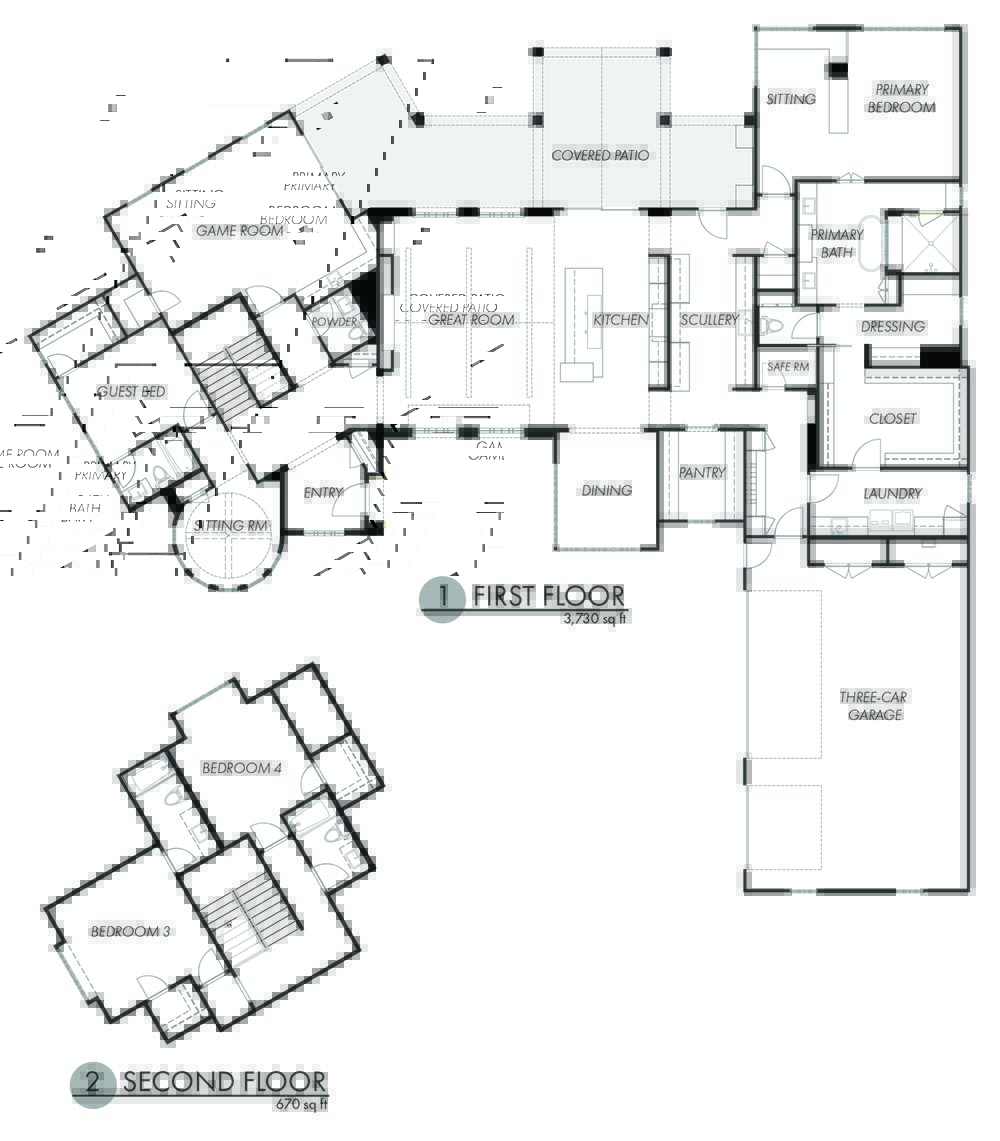 The house is 4390 sqft, with 4 bedrooms, 4.5 bathrooms, Game room with Bar, Office, and a Safe room.